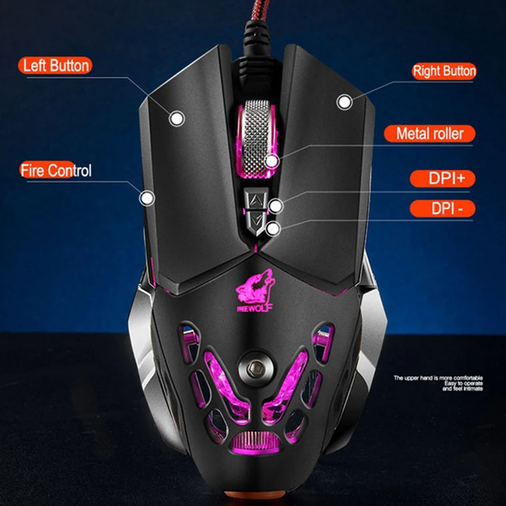 Fashion Wired Office Game Mouse V9 2400DPI Wired Mechanic Backlight Gaming Mouse 6 Button Macro Pro
