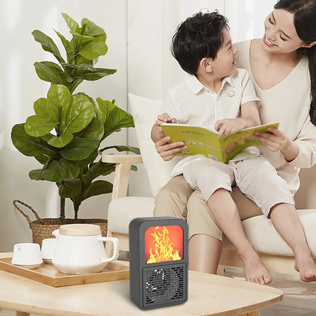 Creative Portable Fan Office Bedroom Electronic Fireplace Heater 3D Flame Heater Home Desktop Heate